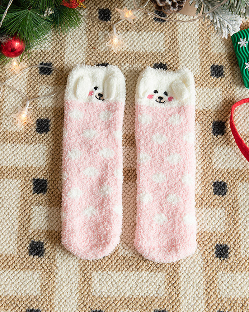 Christmas Coral Fleece Fun Print Warm Socks